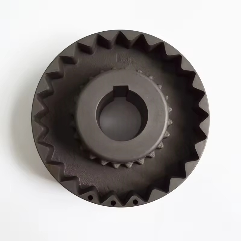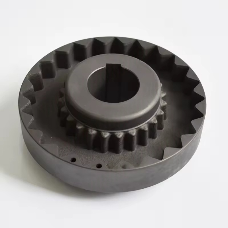 Girfleksibel kobling: De fleksible komponentene i girhylsen i denne koblingen har samme antall tenner som tennene på halvkroppen på flensekoblingen. De ytre tennene er delt inn i rette tenner og skråner. Bevel girkoblingen gir mulighet for en større vinkelforskyvning, som kan forbedre kontakttilstanden til tennene og forbedre momentoverføringskapasiteten og forlenge levetiden.